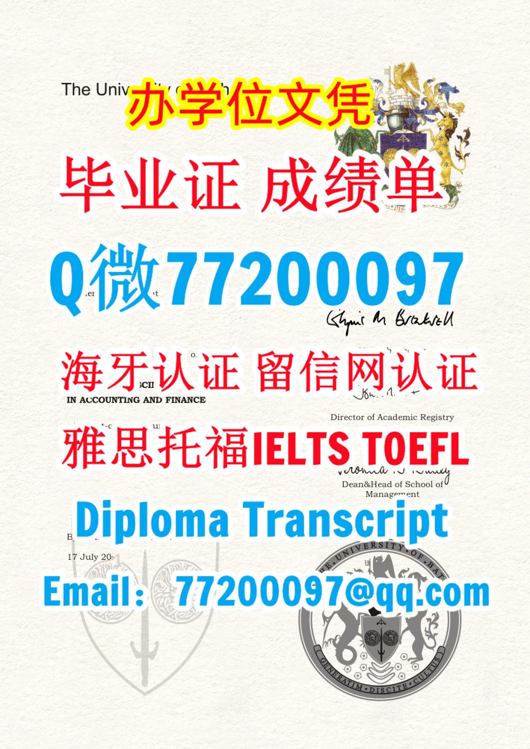 今年国外毕业证成绩单ath毕业证成绩单Q/微:77200097办理巴斯大学毕业证书有Bath学位证书精仿Bath文凭证书能办Bath成绩单制作巴斯大学文凭证书雅思托福University of Bath Diploma Degree Transcript