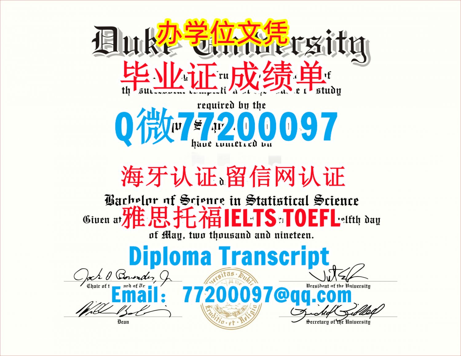 今年国外毕业证成绩单Duke毕业证成绩单Q/微:77200097办理杜克大学毕业证书有Duke学位证书精仿Duke文凭证书能办Duke成绩单制作杜克大学文凭证书雅思托福Duke University Bachelor/Master Diploma Degree Transcript