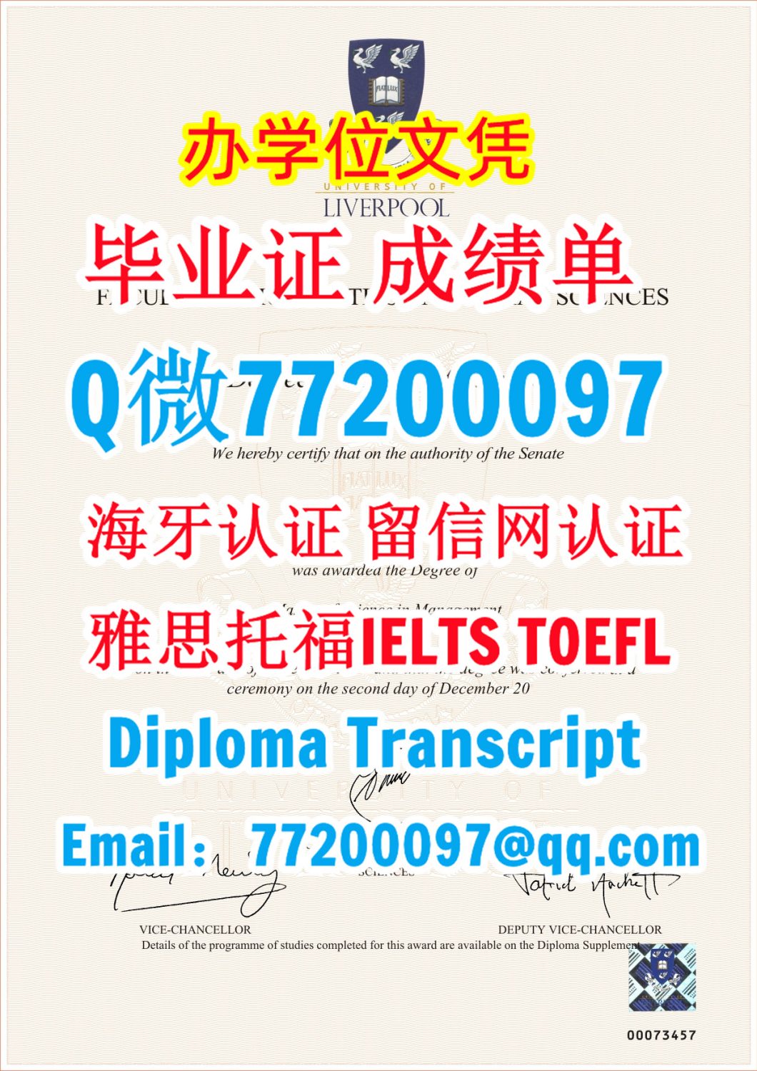 今年国外毕业证成绩单Liverpool毕业证成绩单Q/微:77200097办理利物浦大学毕业证书有UOL学位证书精仿Liverpool文凭证书能办Liverpool成绩单制作利物浦大学文凭证书雅思托福University of Liverpool Diploma Degree Transcript