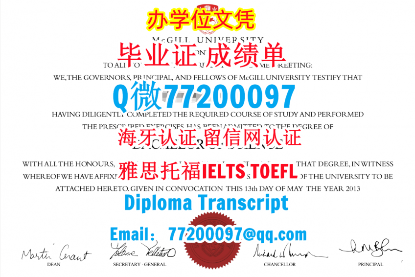 今年国外毕业证成绩单McGill毕业证成绩单Q/微:77200097办理麦吉尔大学毕业证书有McGill学位证书精仿McGill文凭证书能办McGill成绩单制作麦吉尔大学文凭证书offer雅思托福McGill University Diploma Degree Transcript