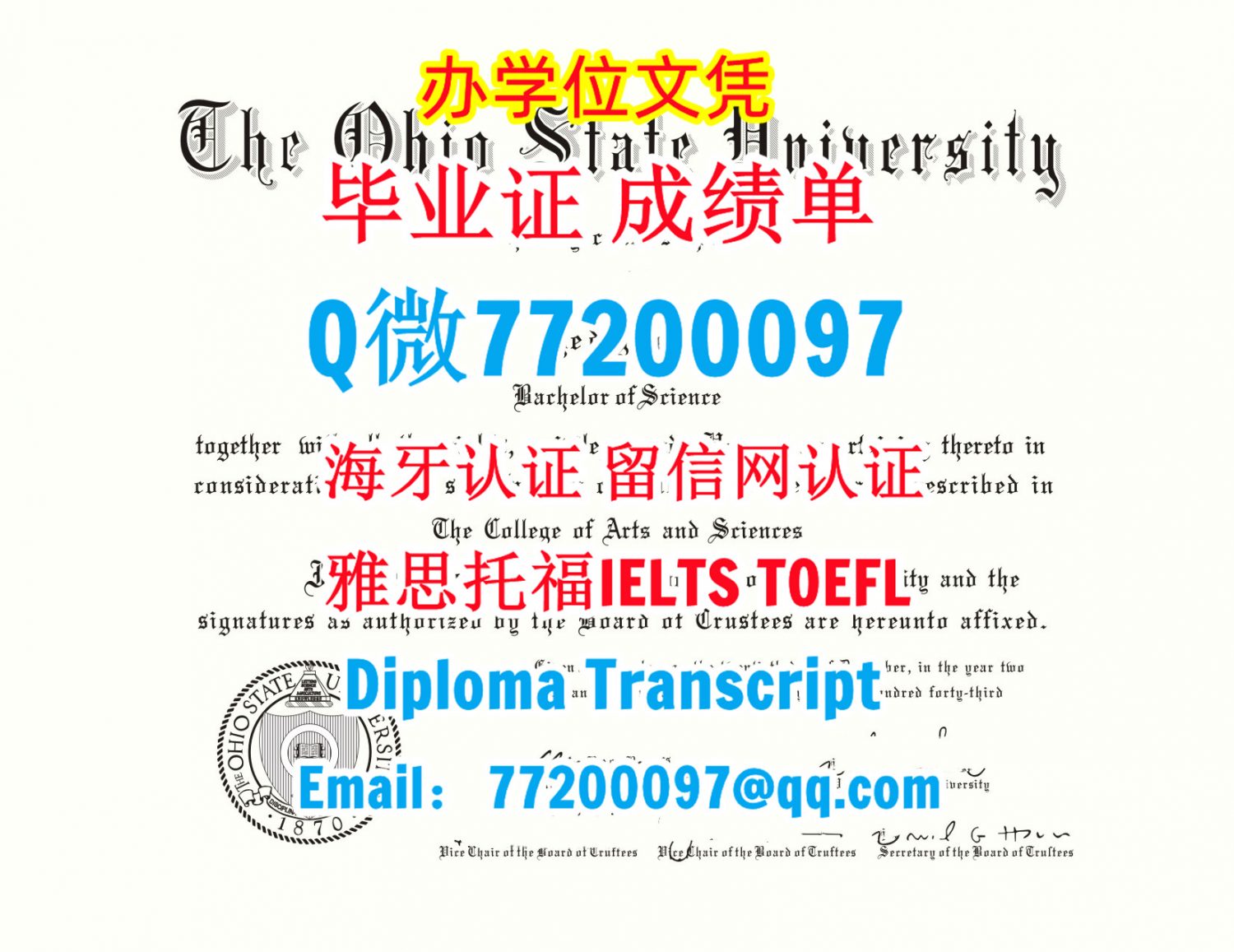 今年国外毕业证成绩单OSU毕业证成绩单Q/微:77200097办理俄亥俄州立大学毕业证书有OSU学位证书精仿OSU文凭证书能办OSU成绩单制作俄亥俄州立大学文凭证书雅思托福Ohio State University Bachelor/Master Diploma Degree Transcript