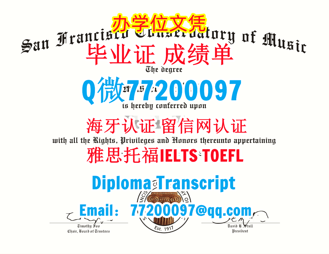 今年国外毕业证成绩单SFCM毕业证成绩单Q/微:77200097办理旧金山音乐学院毕业证书有SFCM学位证书精仿SFCM文凭证书能办SFCM成绩单制作旧金山音乐学院文凭证书雅思托福San Francisco Conservatory of Music Bachelor/Master Diploma Degree Transcript