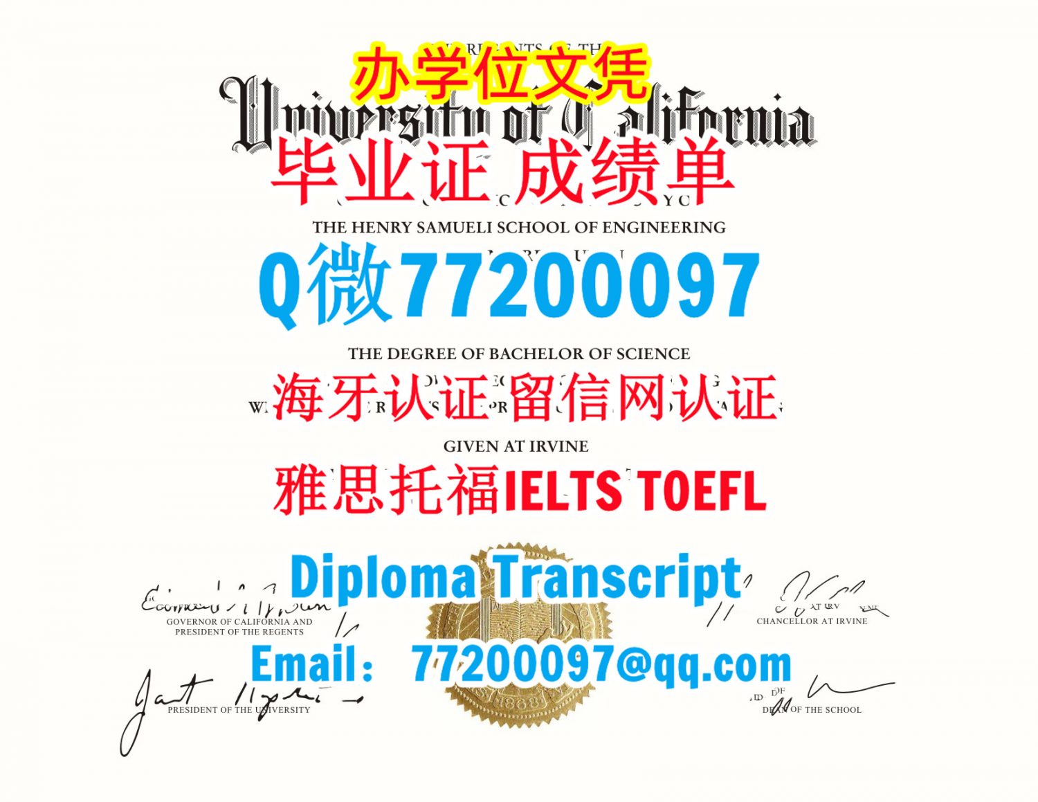 今年国外毕业证成绩单UCI毕业证成绩单Q/微:77200097办理加州大学尔湾分校毕业证书有UCI学位证书精仿UCI文凭证书能办UCI成绩单制作加州大学尔湾分校文凭证书雅思托福University of California Irvine Bachelor/Master Diploma Degree Transcript