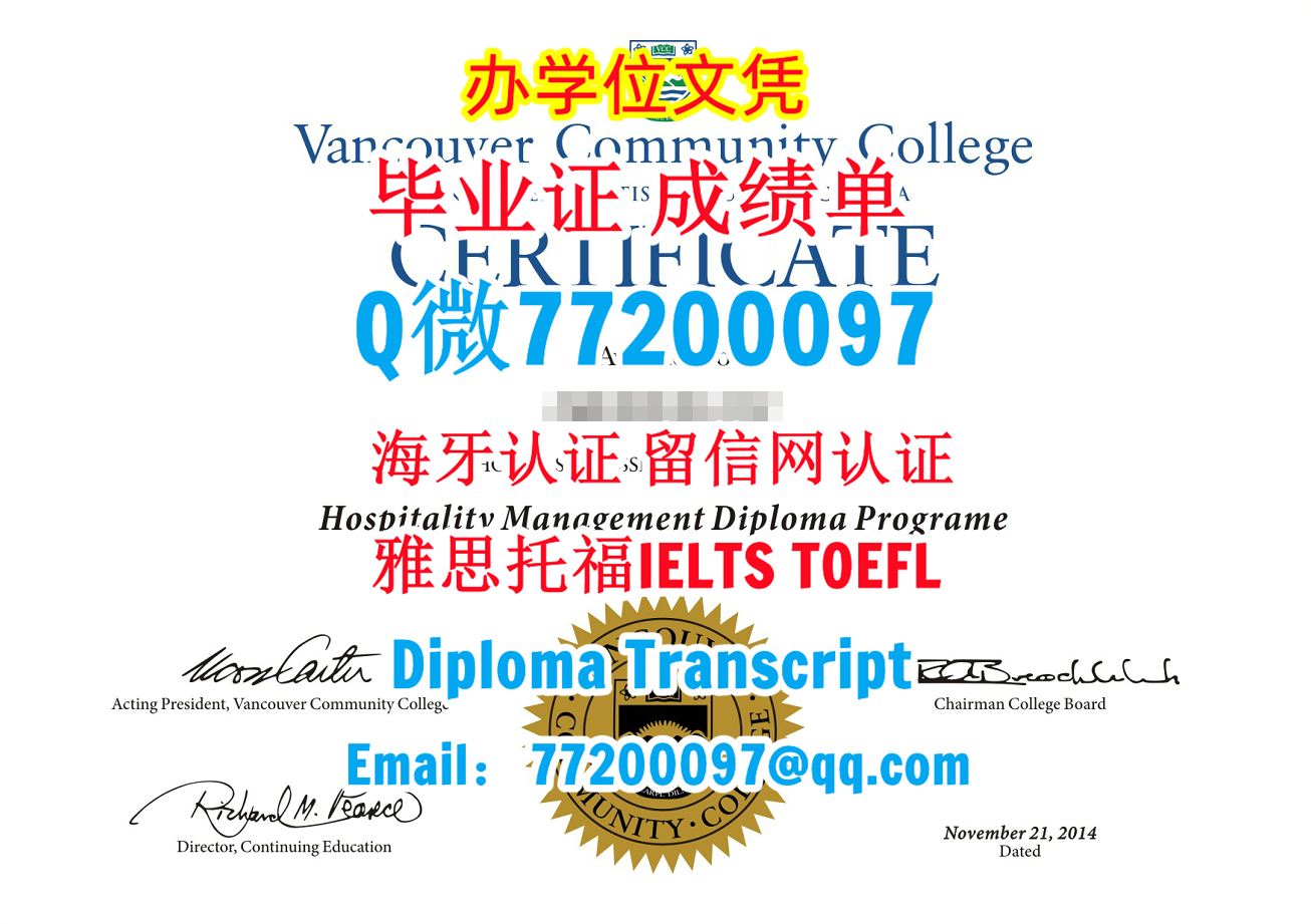 今年国外毕业证成绩单VCC毕业证成绩单Q/微:77200097办理温哥华社区学院毕业证书有VCC学位证书精仿VCC文凭证书能办VCC成绩单制作温哥华社区学院文凭证书offer雅思托福Vancouver Community College Diploma Degree Transcript
