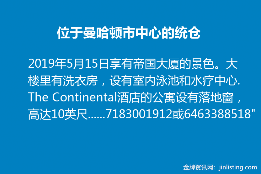 位于曼哈顿市中心的统仓 7183001912或6463388518