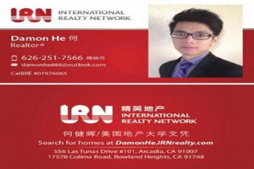 依著Damon He 何健辉 最好的服务,诚恳, 与专业;让每一个客户安心满意。我做住宅与商业地产,买卖与出租。欢迎联系我关于任何地产与相关的一切问题。非常感谢。 电话号码(626)251-7566 — 同时也是微信号码。