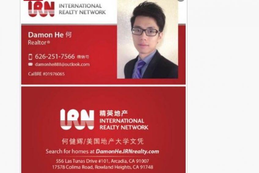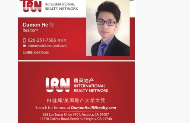 Damon He 何健辉,是美国精英地产公司的地产经纪人,精通 普通话,粤语,英文,开平话/台山话, 勤奋刻苦,多年经验,金融/地产/法律-美国大学文凭, 加州地产Broker经纪执照(比一般地产经纪执照高级;需要经验与更多的地产课程),加州房地产经纪人协会(CAR)成员,美国房地产经纪人协会(NAR)成员。 公司在华人热门城市 亚凯迪亚,罗兰岗,尔湾都有分行,而且有强大团队:贷款,装潢改建,等等, 为你出谋划策。专精自住房屋买卖,投资房屋买卖,房屋出租。