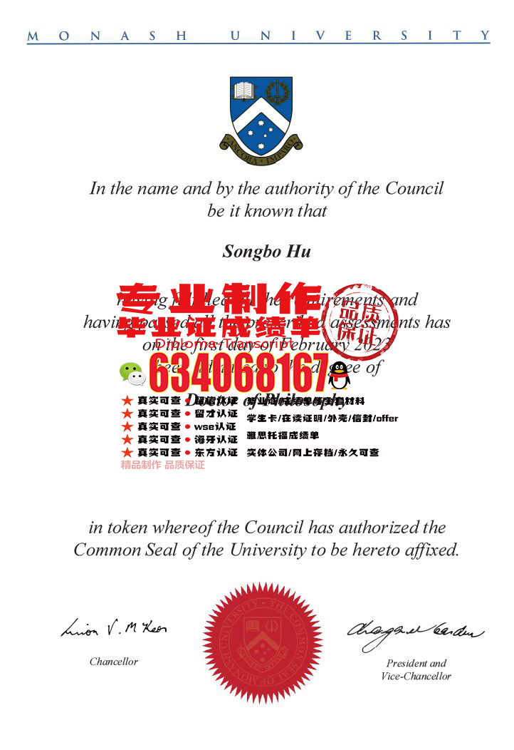做精防澳洲学历QQ微信634068167制作莫纳什大学Monash University#毕业证成绩单#原版外壳#高校offer#校园卡#留才留信#海牙#澳洲id#在读证明材料