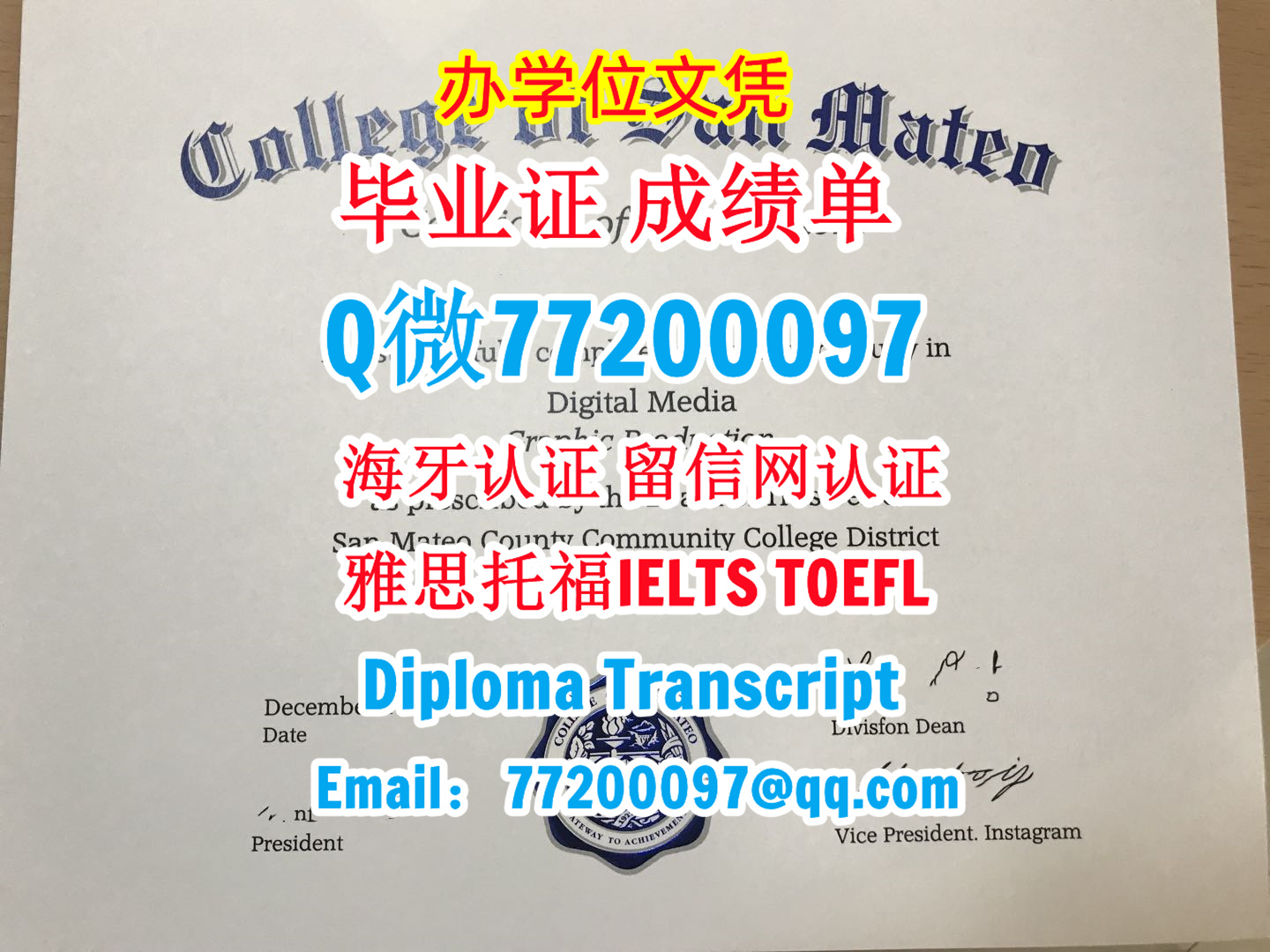 做CSM毕业证书Q/微:77200097办理圣马特奥学院毕业证书有CSM学位证书精仿CSM文凭证书能办CSM成绩单制作圣马特奥学院文凭证书雅思托福College of San Mateo Bachelor/Master Diploma Degree Transcript