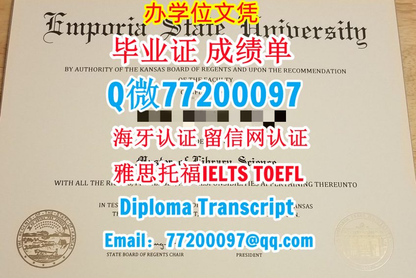 做ESU毕业证书Q/微:77200097办理恩波利亚州立大学毕业证书有ESU学位证书精仿Emporia State文凭证书能办ESU成绩单制作恩波利亚州立大学文凭证书雅思托福Emporia State University Bachelor/Master Diploma Degree Transcript