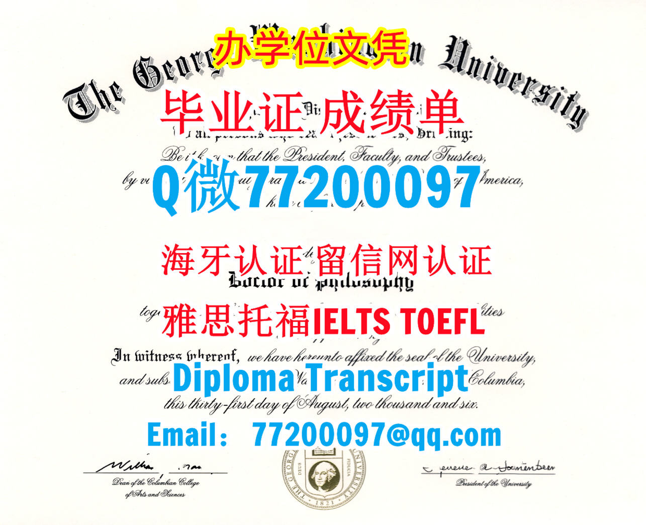 做GWU毕业证书Q/微:77200097办理乔治华盛顿大学毕业证书有GWU学位证书精仿GWU文凭证书能办GW成绩单制作乔治华盛顿大学文凭证书雅思托福George Washington University Bachelor/Master Diploma Degree Transcript