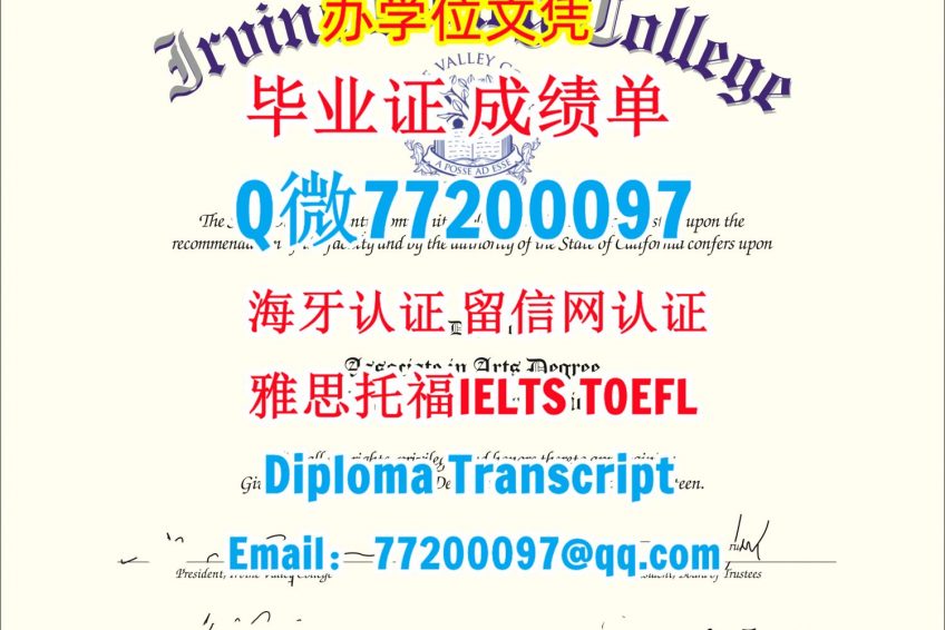 做IVC毕业证书Q/微:77200097办理欧文河谷学院毕业证书有IVC学位证书精仿IVC文凭证书能办IVC成绩单制作欧文河谷学院文凭证书雅思托福Irvine Valley College Bachelor/Master Diploma Degree Transcript