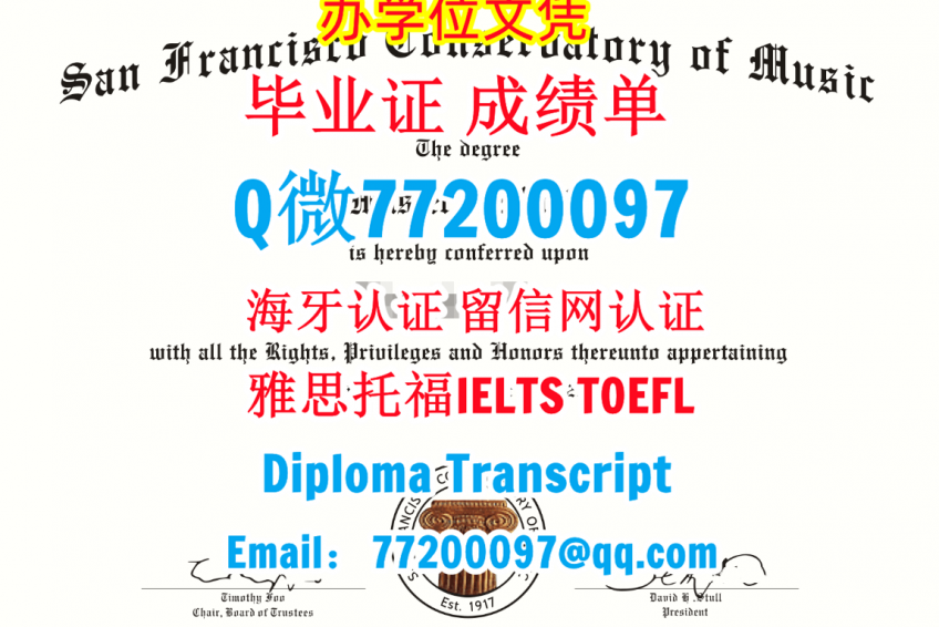 做SFCM毕业证书Q/微:77200097办理旧金山音乐学院毕业证书有SFCM学位证书精仿SFCM文凭证书能办SFCM成绩单制作旧金山音乐学院文凭证书雅思托福San Francisco Conservatory of Music Bachelor/Master Diploma Degree Transcript