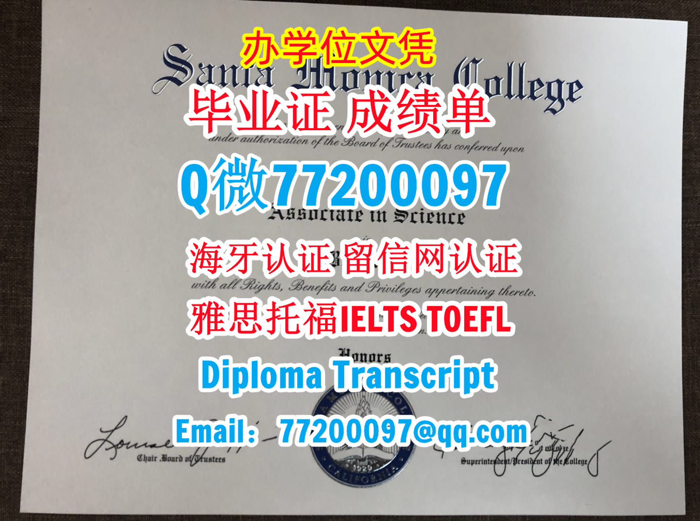 SMC毕业证书Q/微:77200097办理圣莫尼卡学院毕业证书有SMC学位证书精仿SMC文凭证书能办SMC成绩单制作圣莫尼卡学院文凭证书雅思托福Santa Monica College Bachelor/Master Diploma Degree Transcript