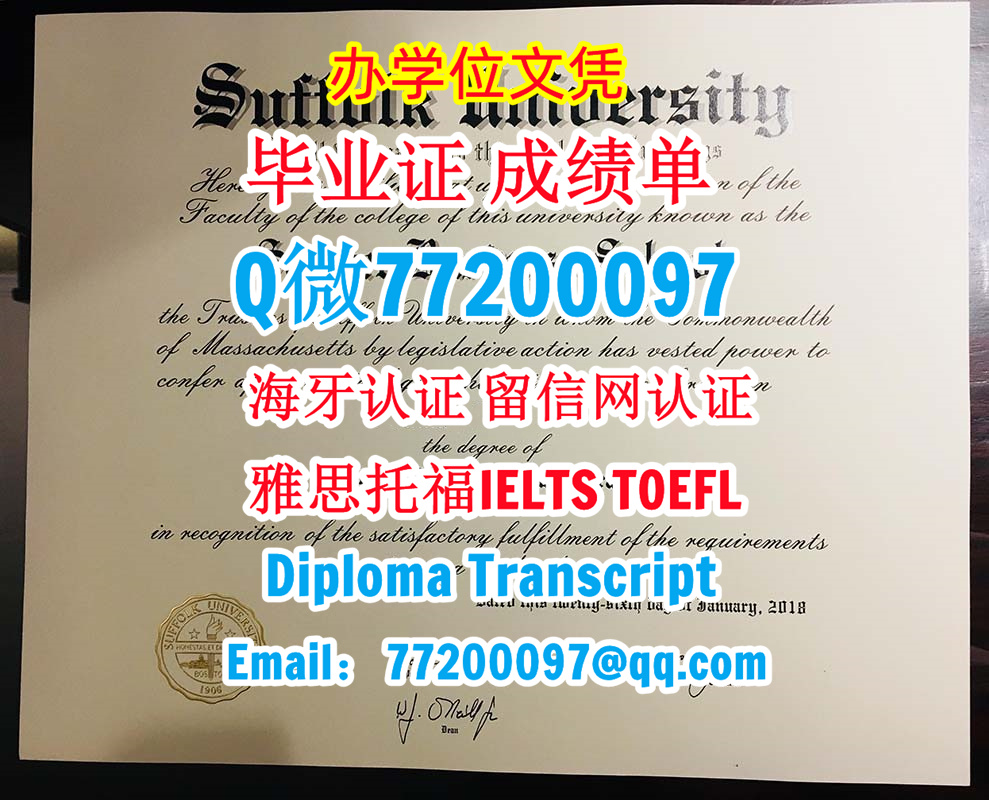 做Suffolk毕业证书Q/微:77200097办理萨福克大学毕业证书有Suffolk学位证书精仿Suffolk文凭证书能办Suffolk成绩单制作萨福克大学文凭证书雅思托福Suffolk University Bachelor/Master Diploma Degree Transcript