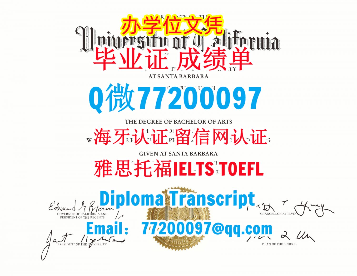 做UCSB毕业证书Q/微:77200097办理加州大学圣塔芭芭拉分校毕业证书有UCSB学位证书精仿UC Santa Barbara文凭证书能办UC Santa Barbara成绩单制作加州大学圣塔芭芭拉分校文凭证书雅思托福University of California-Santa Barbara Bachelor/Master Diploma Degree Transcript