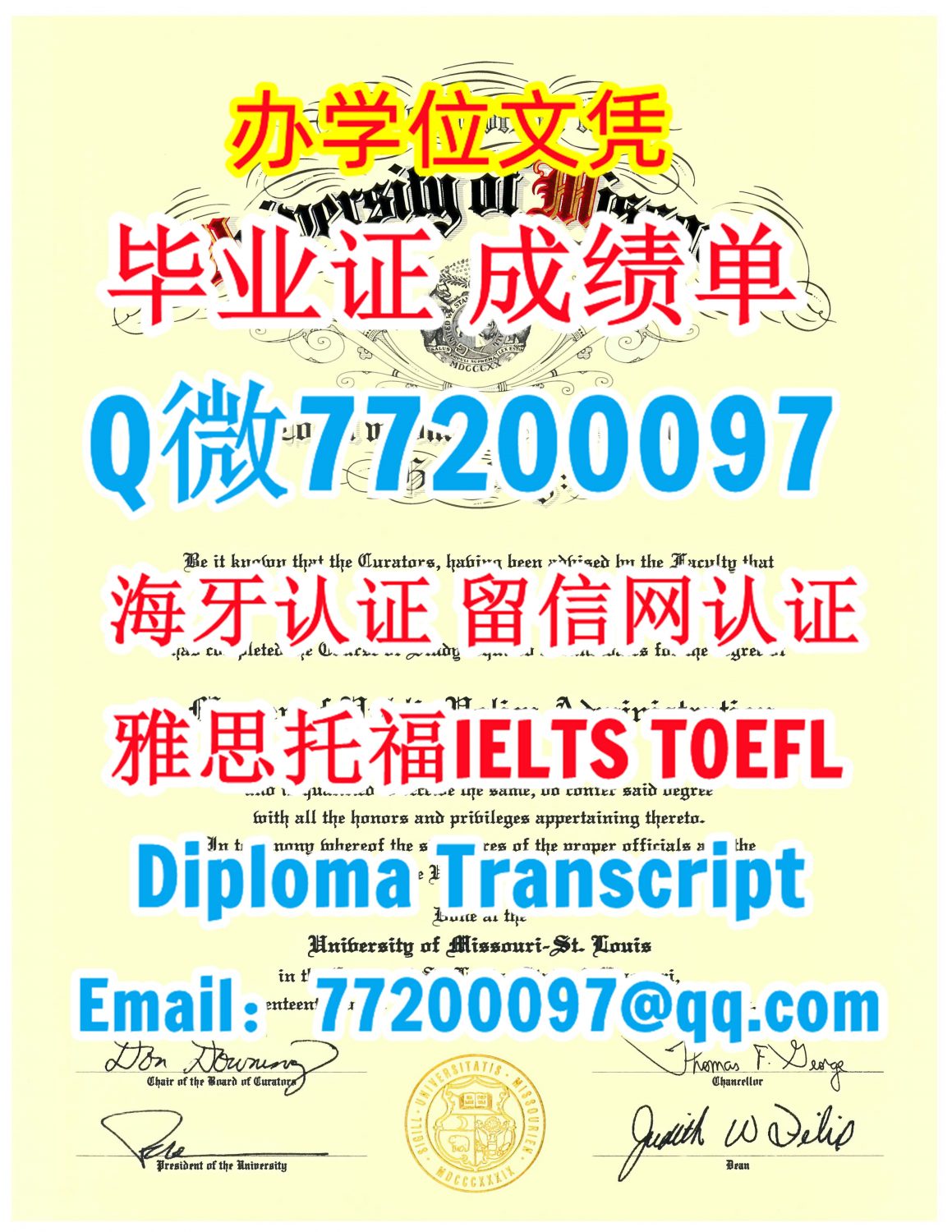 做UMSL毕业证书Q/微:77200097办理密苏里大学圣路易斯分校毕业证书有UMSL学位证书精仿UMSL文凭证书能办UMSL成绩单制作密苏里大学圣路易斯分校文凭证书雅思托福University of Missouri St.Louis Bachelor/Master Diploma Degree Transcript