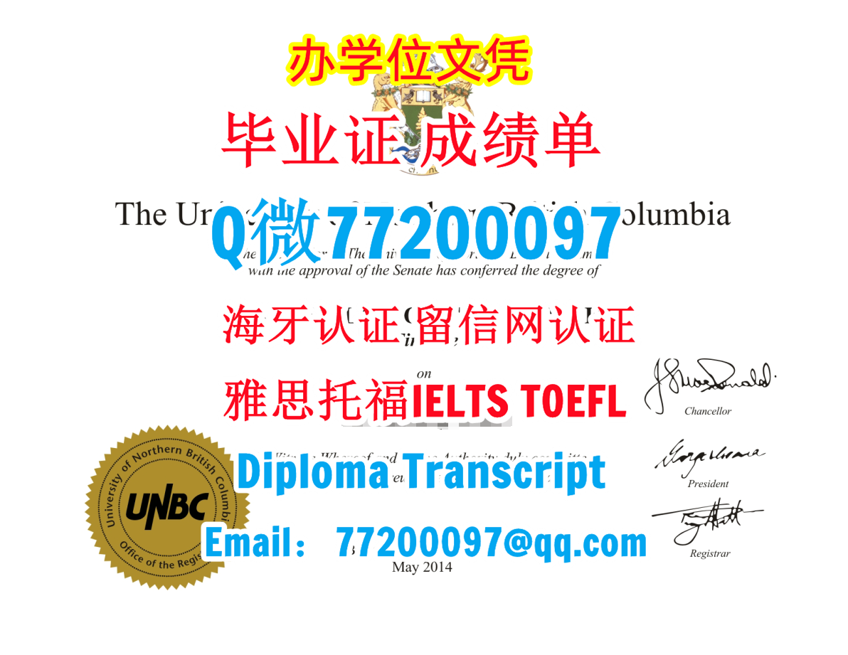 做UNBC毕业证书Q/微:77200097办理北英属哥伦比亚大学毕业证书有UNBC学位证书精仿UNBC文凭证书能办UNBC成绩单制作北英属哥伦比亚大学文凭证书offer雅思托福University of Northern British Columbia Diploma Degree Transcript