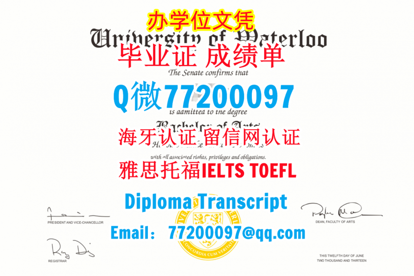 做uWaterloo毕业证书Q/微:77200097办理滑铁卢大学毕业证书有uWaterloo学位证书精仿uWaterloo文凭证书能办uWaterloo成绩单制作滑铁卢大学文凭证书offer雅思托福University of Waterloo Diploma Degree Transcript