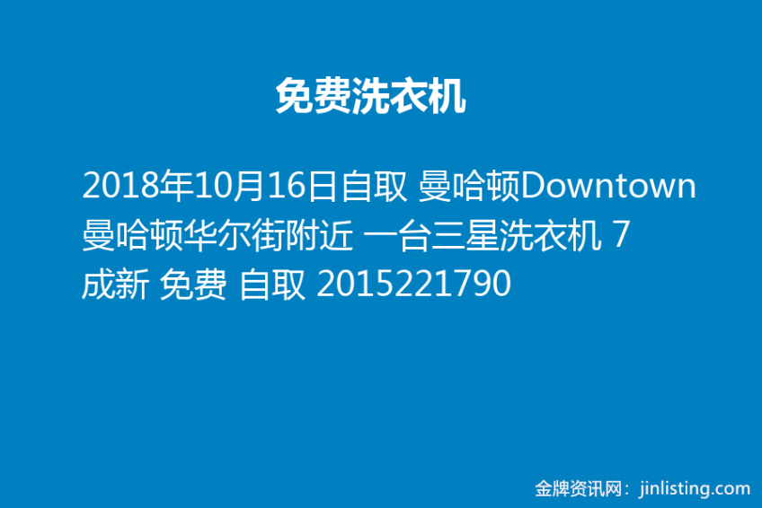 免费洗衣机 自取 曼哈顿Downtown 曼哈顿华尔街附近 一台三星洗衣机 7成新 免费 自取 2015221790