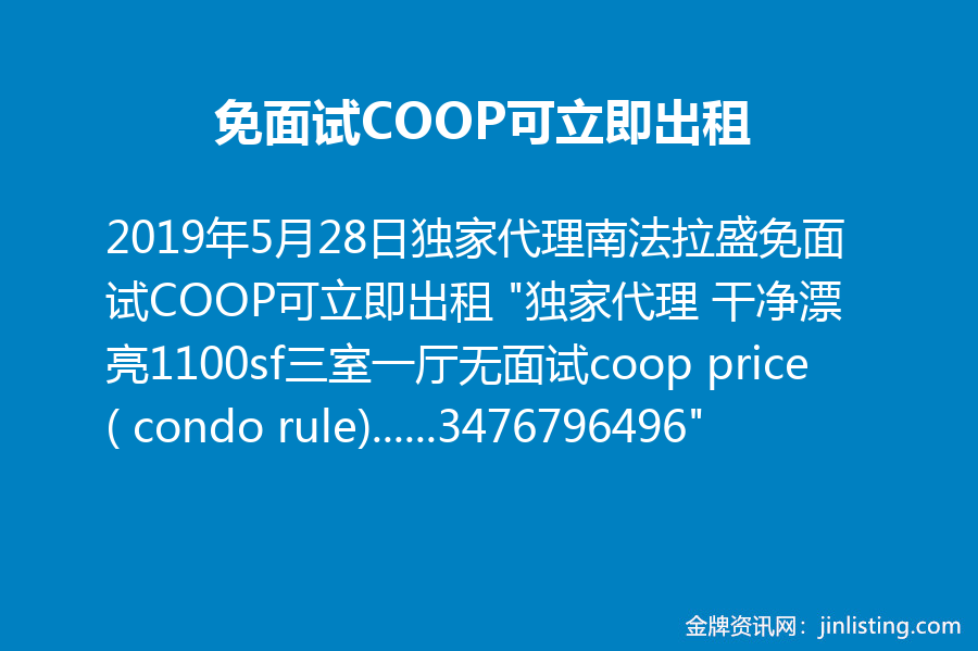 免面试COOP可立即出租 3476796496