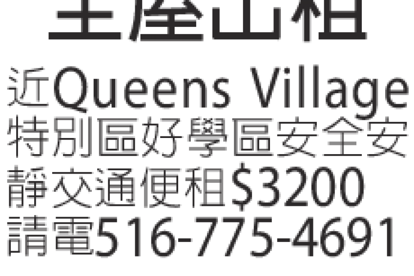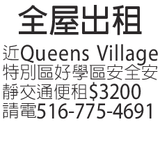 近Queens Village特別區好學区安全安静交通便租3200電516-775-4691