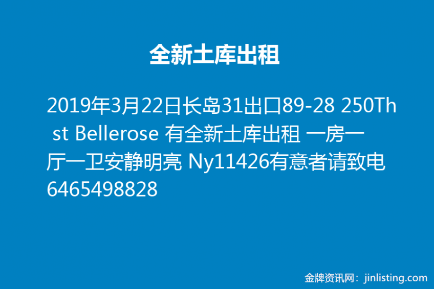 长岛31出口89-28 250Th st Bellerose 有全新土库出租 一房一厅一卫安静明亮 Ny11426有意者请致电6465498828