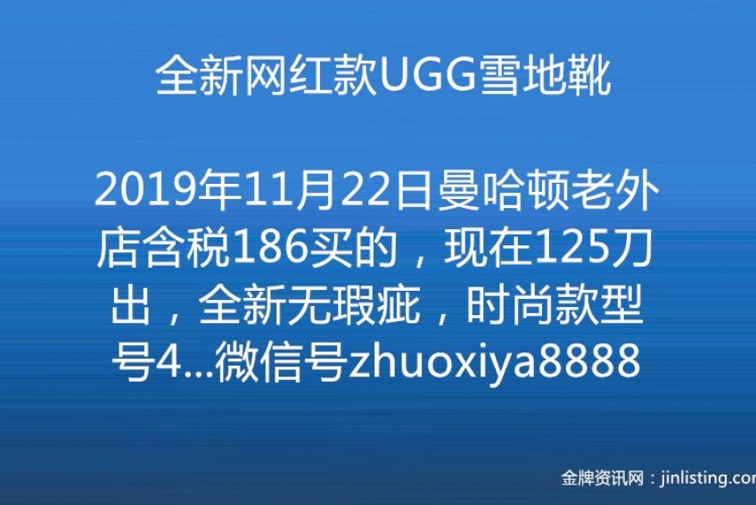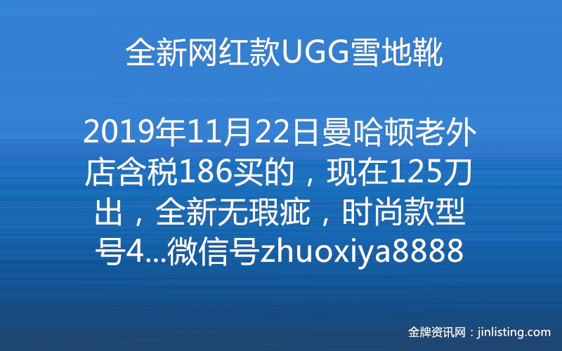 全新网红款UGG雪地靴 曼哈顿老外店含税186买的,现在125刀出,全新无瑕疵,时尚款型号4号,大概35一36号都可以穿,微信号zhuoxiya8888