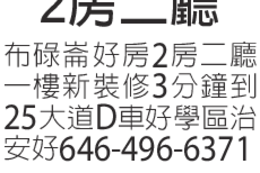 兩房兩廳租 646-496-6371