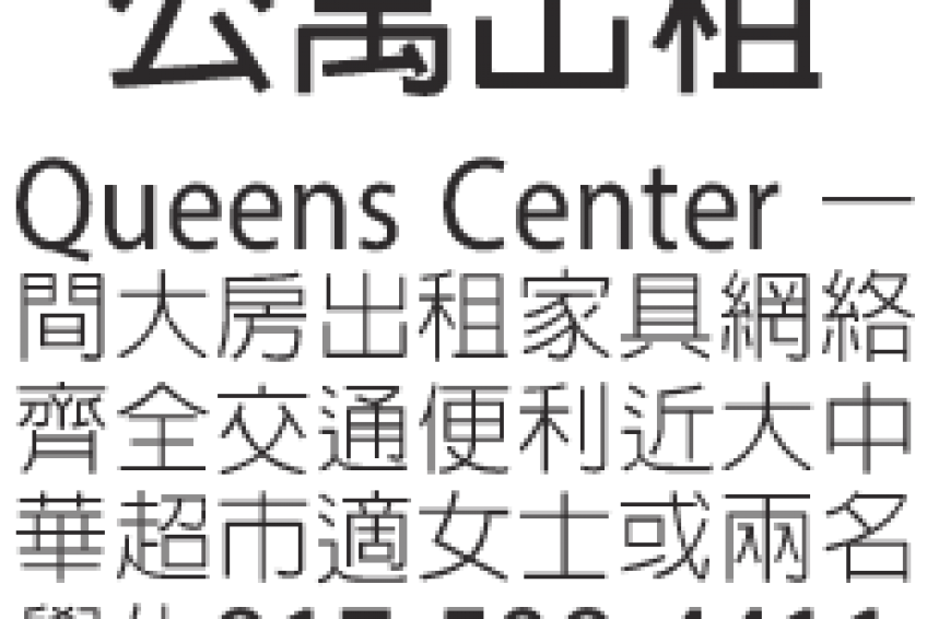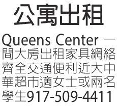 Queens Center 一間大房出租 家具網絡齊全 交通便利近大中華超市 女士或兩名學生 917-509-4411