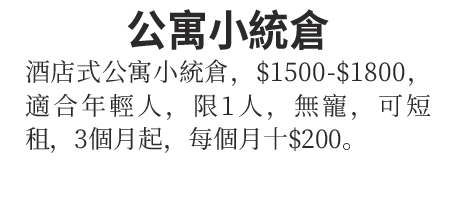 法拉盛租—酒店式公寓小筒仓$1500-1800适合年轻人,限1人,无宠,可短租,3个月起,每个月十$200 详询请电 9293004947