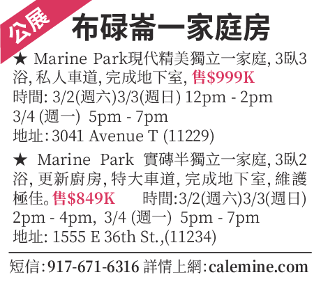 由 Calemine & Co. 獨家出售,電/短信:917-671-6316