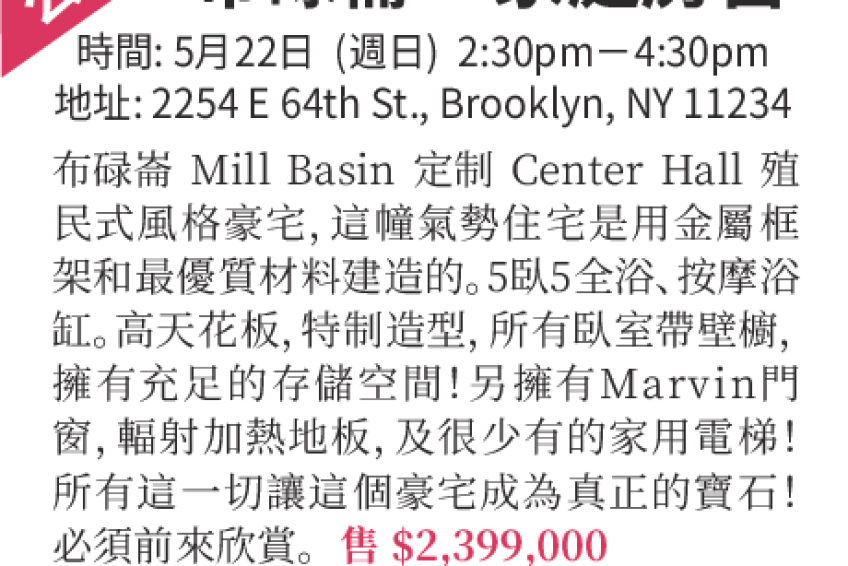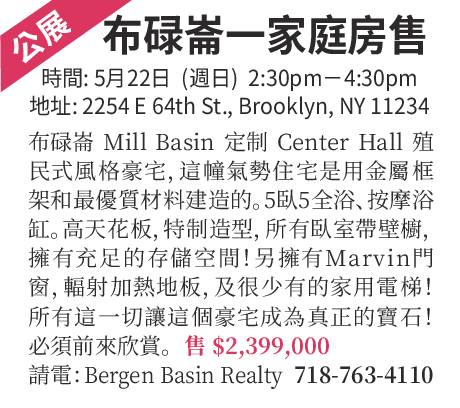布碌崙 Mill Basin 定制 Center Hall 殖民式風格豪宅,這幢氣勢住宅是用金屬框架和最優質材料建造的。5臥5全浴、按摩浴缸。高天花板,特制造型,所有臥室帶壁櫥,擁有充足的存儲空間!另擁有Marvin門窗,輻射加熱地板,及很少有的家用電梯!所有這一切讓這個豪宅成為真正的寶石! 必須前來欣賞。 售 $2,399,000