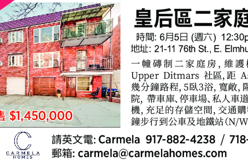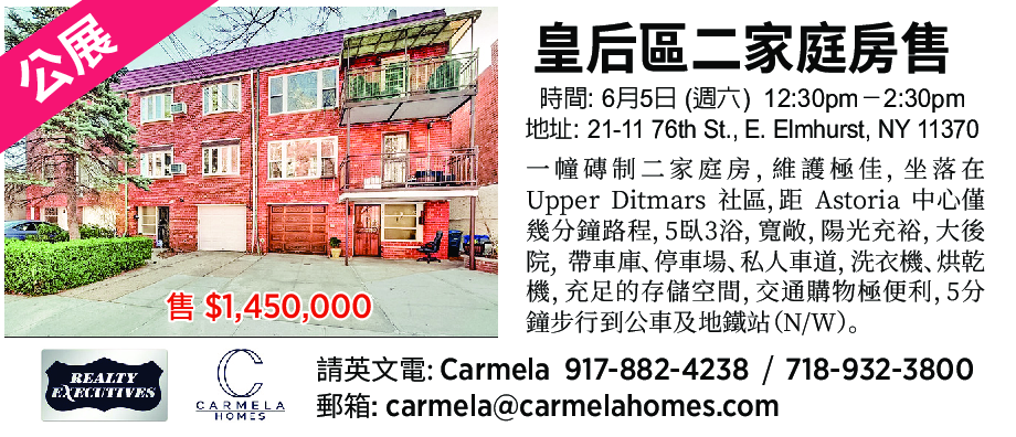 電:Carmela (917) 882 – 4238 | 718 – 932-3800