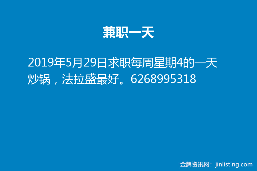 兼职一天 求职每周星期4的一天炒锅,法拉盛最好。6268995318