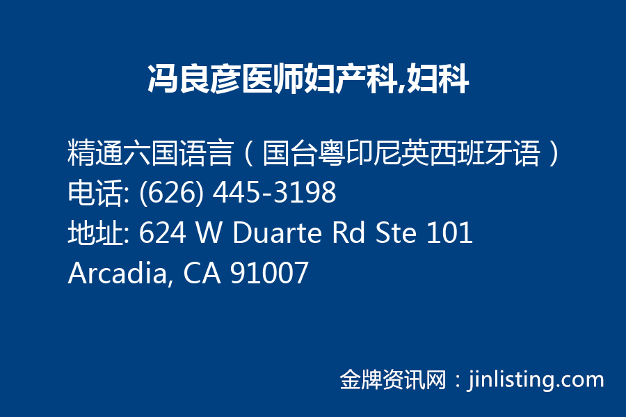 美国妇产科专家文凭(Ob-Gyn Board Certified)的冯良彦医师是美国史丹佛大学毕业,加州UCLA医学博士,Beverly Hills Cedars Sinai Hospital医师,Garfield Hospital医师,San Gabriel Medical Center医师,有二十八年经验。