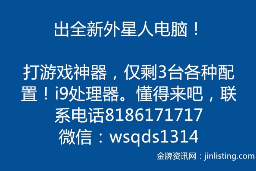 出全新外星人电脑!打游戏神器,仅剩3台各种配置!i9处理器。懂得来吧,联系电话8186171717 微信:wsqds1314