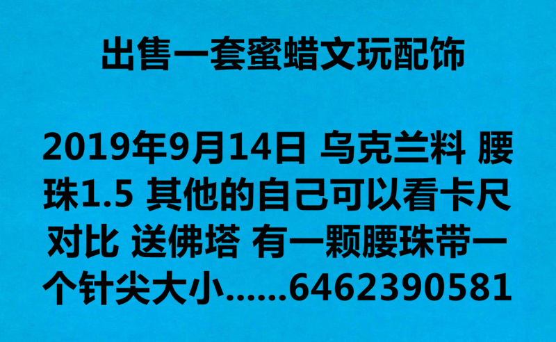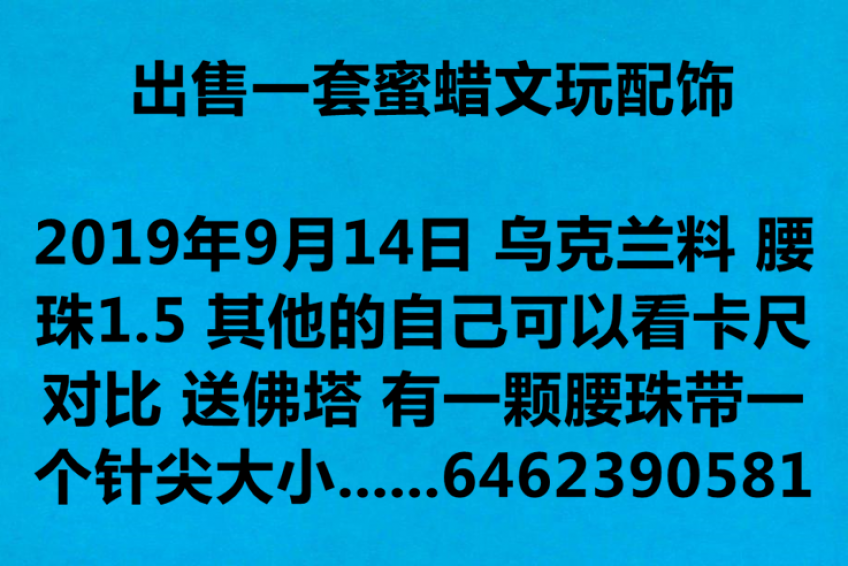 出售一套蜜蜡文玩配饰 乌克兰料 腰珠1.5 其他的自己可以看卡尺对比 送佛塔 有一颗腰珠带一个针尖大小的黑点 一套一共250刀 纽约自取 喜欢的朋友可加微信 odinsven 电话6462390581