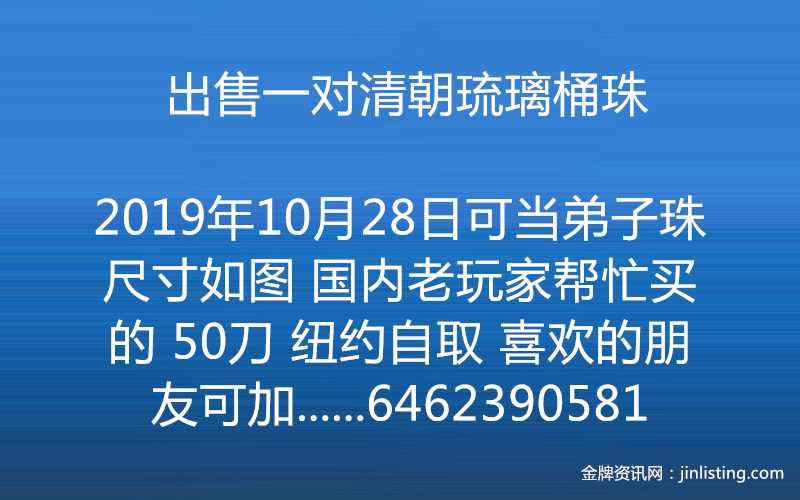 出售一对清朝琉璃桶珠 可当弟子珠 尺寸如图 国内老玩家帮忙买的 50刀 纽约自取 喜欢的朋友可加微信 odinsven 电话6462390581