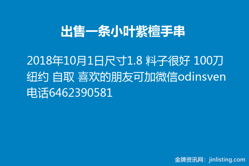 出售一条小叶紫檀手串 尺寸1.8 料子很好 100刀 纽约 自取 喜欢的朋友可加微信odinsven 电话6462390581