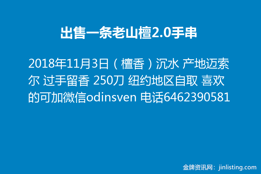 出售一条老山檀2.0手串(檀香)沉水 产地迈索尔 过手留香 250刀 纽约地区自取 喜欢的可加微信odinsven 电话6462390581