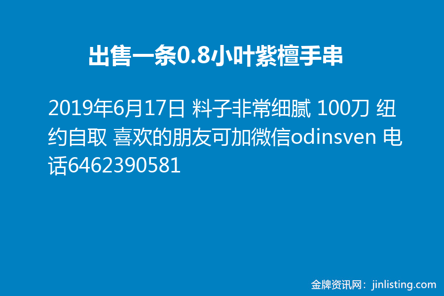 出售一条0.8小叶紫檀手串 料子非常细腻 100刀 纽约自取 喜欢的朋友可加微信odinsven 电话6462390581