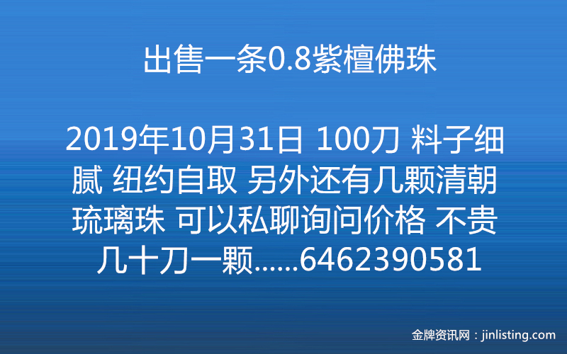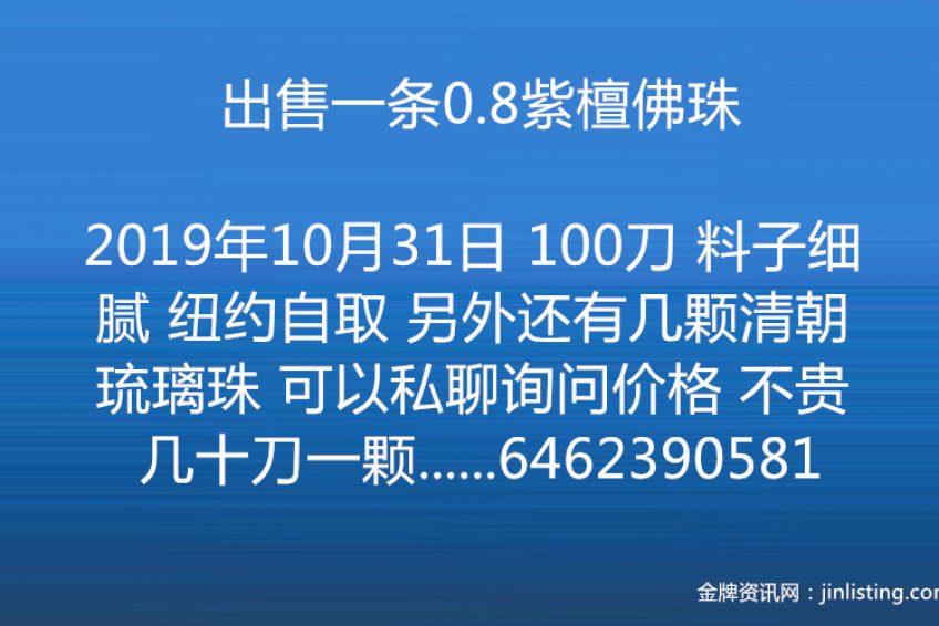 出售一条0.8紫檀佛珠 100刀 料子细腻 纽约自取 另外还有几颗清朝琉璃珠 可以私聊询问价格 不贵 几十刀一颗 喜欢的朋友可加微信odinsven 电话6462390581