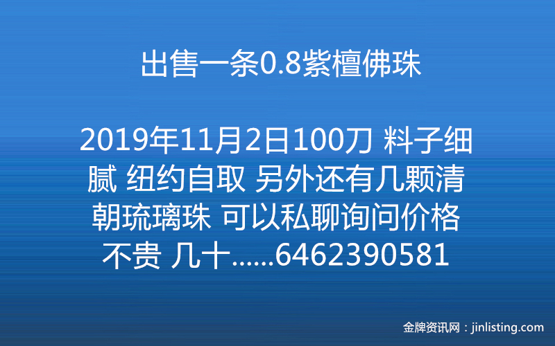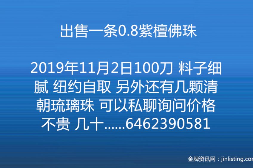 出售一条0.8紫檀佛珠 100刀 料子细腻 纽约自取 另外还有几颗清朝琉璃珠 可以私聊询问价格 不贵 几十刀一颗 喜欢的朋友可加微信odinsven 电话6462390581