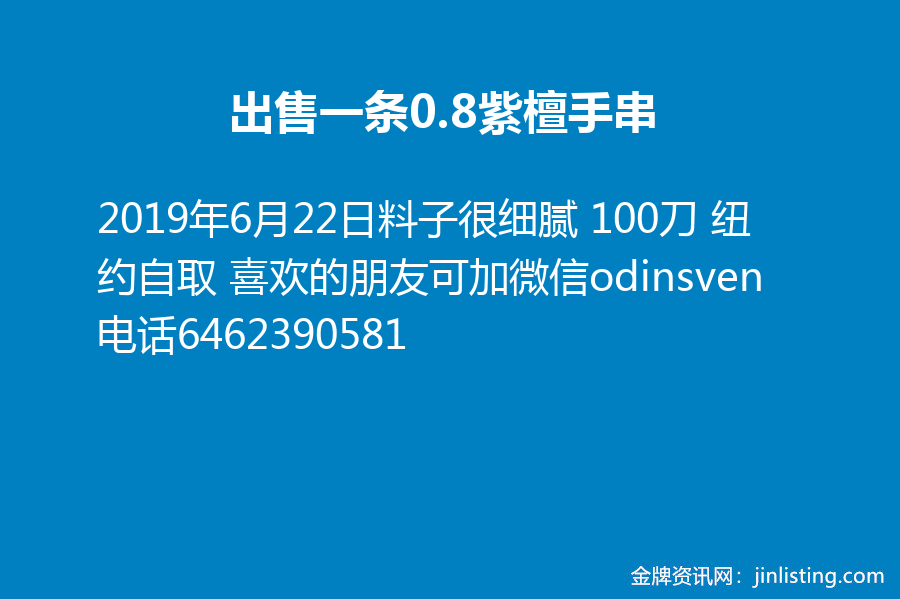 出售一条0.8紫檀手串 料子很细腻 100刀 纽约自取 喜欢的朋友可加微信odinsven 电话6462390581