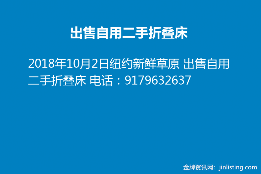纽约新鲜草原 出售自用二手折叠床 电话:9179632637