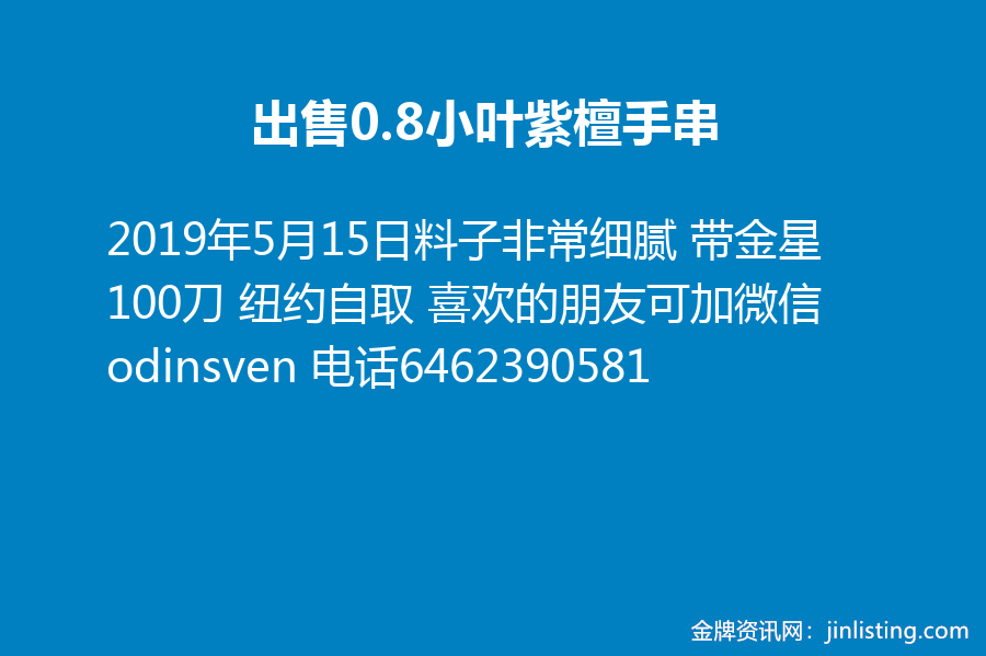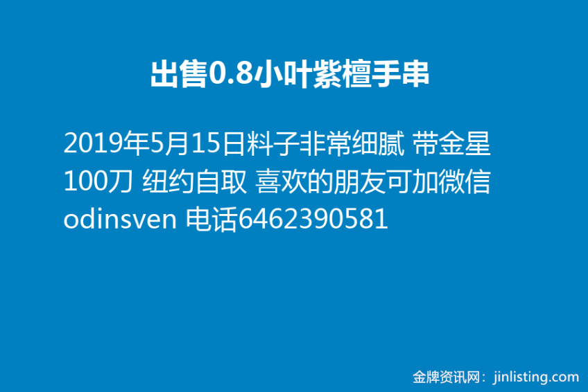出售0.8小叶紫檀手串 料子非常细腻 带金星 100刀 纽约自取 喜欢的朋友可加微信 odinsven 电话6462390581