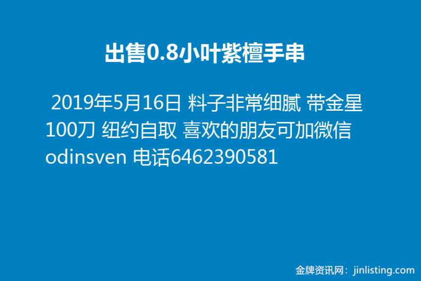 出售0.8小叶紫檀手串 料子非常细腻 带金星 100刀 纽约自取 喜欢的朋友可加微信 odinsven 电话6462390581