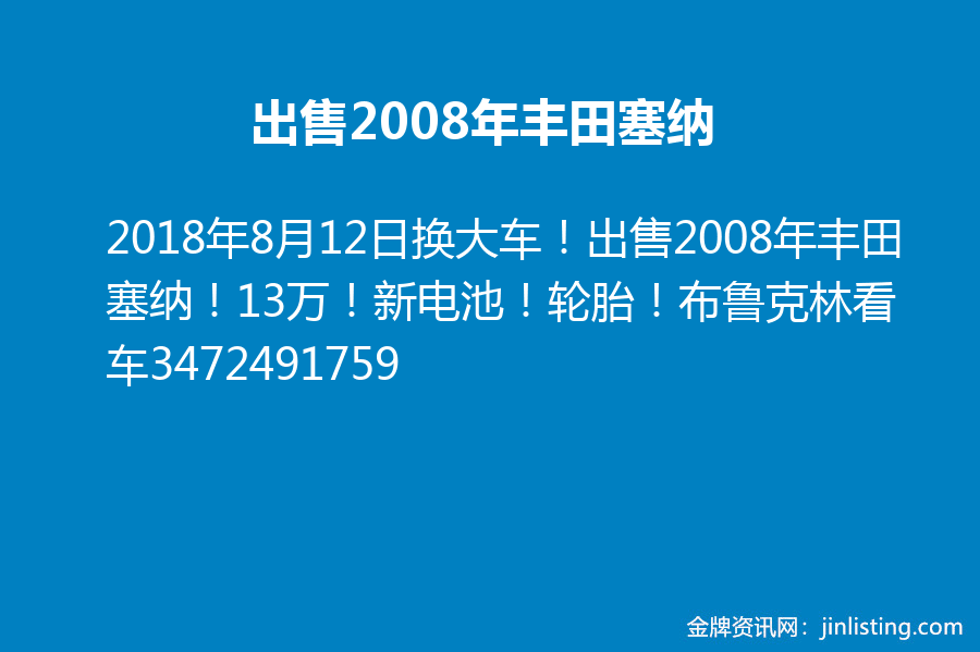 换大车!出售2008年丰田塞纳!13万!新电池!轮胎!布鲁克林看车3472491759