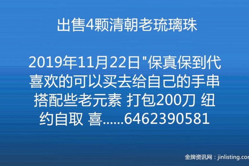 “出售4颗清朝老琉璃珠 保真保到代 喜欢的可以买去给自己的手串搭配些老元素 打包200刀 纽约自取 喜欢的朋友可加微信 odinsven 电话6462390581 无聊人士还是积点德吧 都是开门货 另外出售一条0.8紫檀佛珠 100刀 纽约自取”